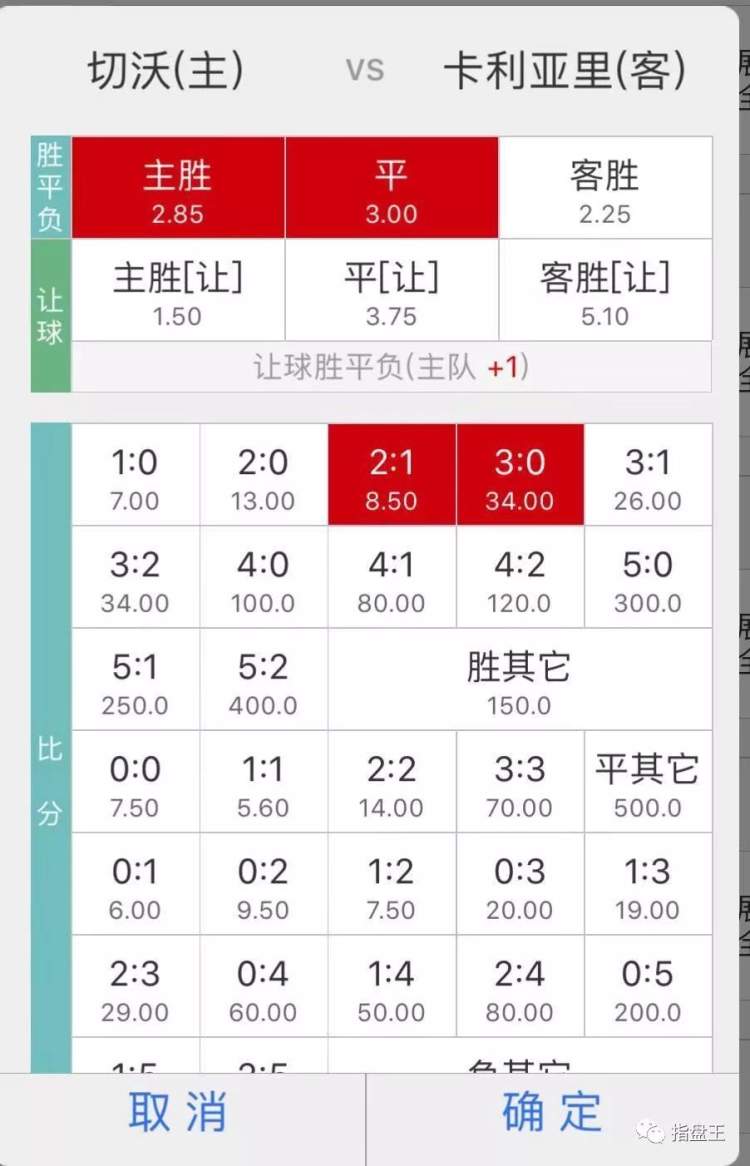 021 意杯 03:45 切沃 VS 卡利亚里 切沃胜或平,比分:2:1、3:0