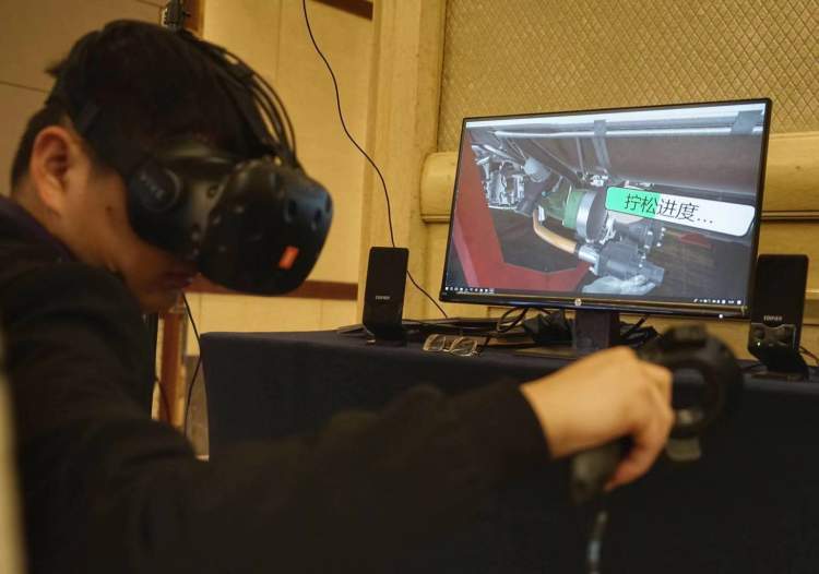 上海优望信息科技有限公司在此次活动中带来了针对发动机燃油泵拆装的VR培训技术——戴上头盔,进入到虚拟的实验室中,就可以根据提示按步进行操作。