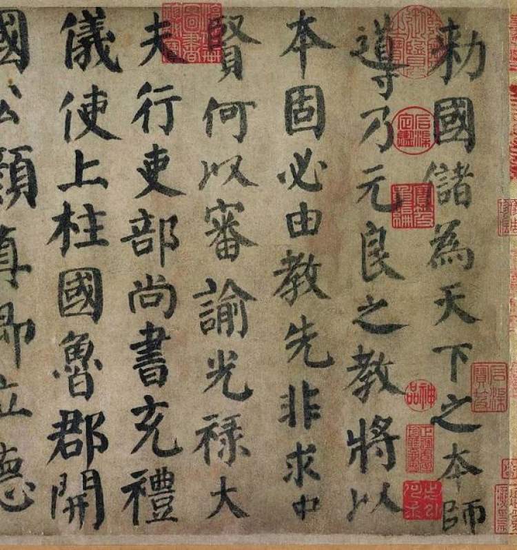 又比如苏轼晚年所作的《洞庭春色赋》与《中山松醪赋》,来自吉林博物馆。这是苏轼所有传世墨迹中字数最多的,加起来有600多字。苏轼为什么要写这么多字?原来这两篇赋都是酒后所写,写的就是喝了“洞庭春色”和“中山松醪”这两种酒后的心得体会。