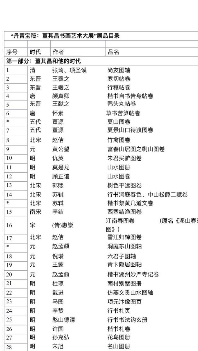 念完名单,浑身直哆嗦——王羲之、王献之、颜真卿、怀素、董源、苏轼、赵佶、黄公望、赵孟頫、倪瓒、王蒙、仇英、恽寿平、朱耷、王原祁……全都是中国书画史上超一流大师,而且这些大名家来展出的,还不是一般作品,全都是《行穰帖》、《鸭头丸帖》、《苦笋帖》、《富春山居图》卷(《剩山图》)这样的千古名作和镇馆之宝,很多名迹都是第一次拿出来展,或者第一次离开它们的收藏机构外出借展。