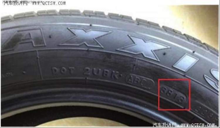在轮胎的外侧,会有一串字母加数字的,如上图凹槽中的“3813”就是此轮胎的生产日期,后两位13是年份,代表2013年,38代表轮胎是2013年的第38周生产的,38周是266天,一共8个多月,所以此轮胎是在9月生产的。