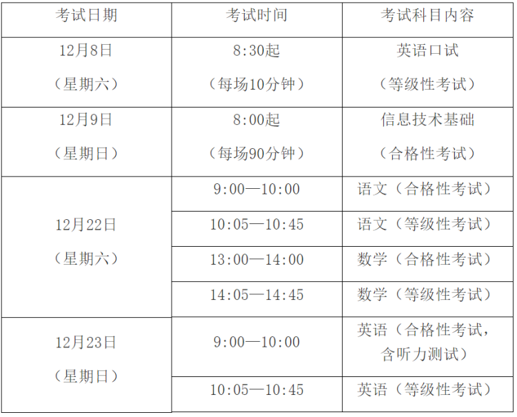 (2)信息技术基础考试:考生须根据信息技术基础准考证上考试场次提前30分钟到考点报到。