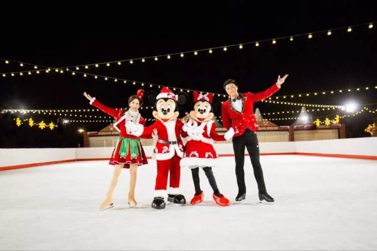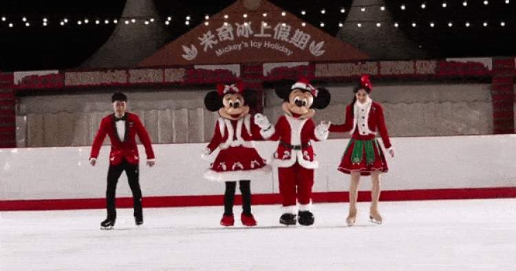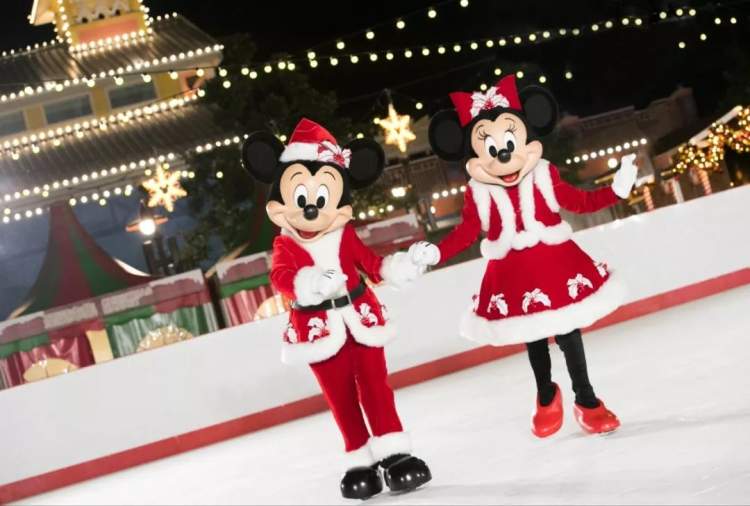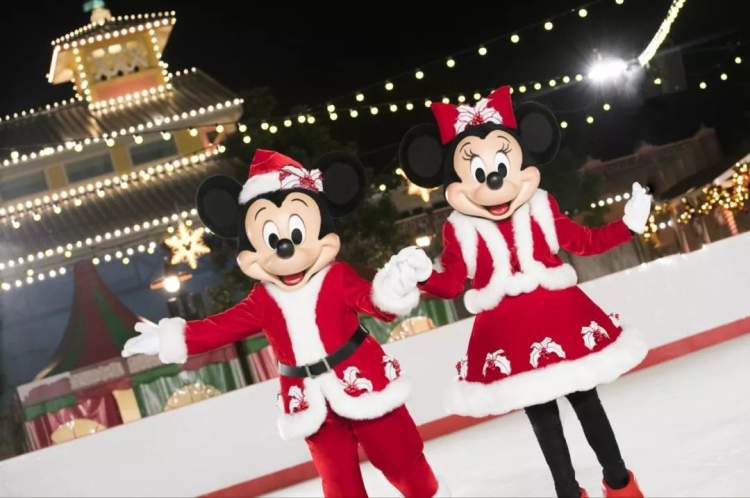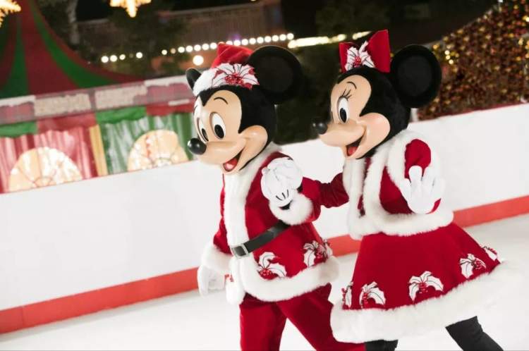 穿着圣诞服装和冰鞋的米奇米妮将在圣诞季期间