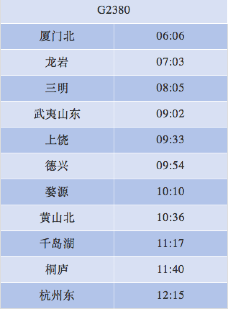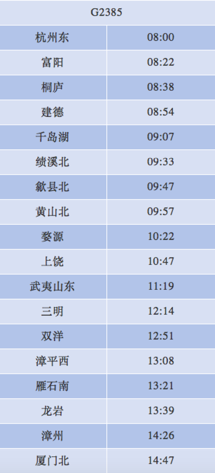 杭黄铁路将于今年年底具备开通运营条件,2019年“1.5调图”后,杭黄铁路计划开行旅客列车36对。周到君对具体的列车开行时间做出了具体的整理。