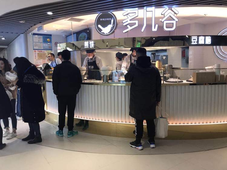 还没到午饭时间,就已经有很多小伙伴去探店啦~洋气的“煎饼摊”前排队的人还真不少,都是来买早饭的吗?