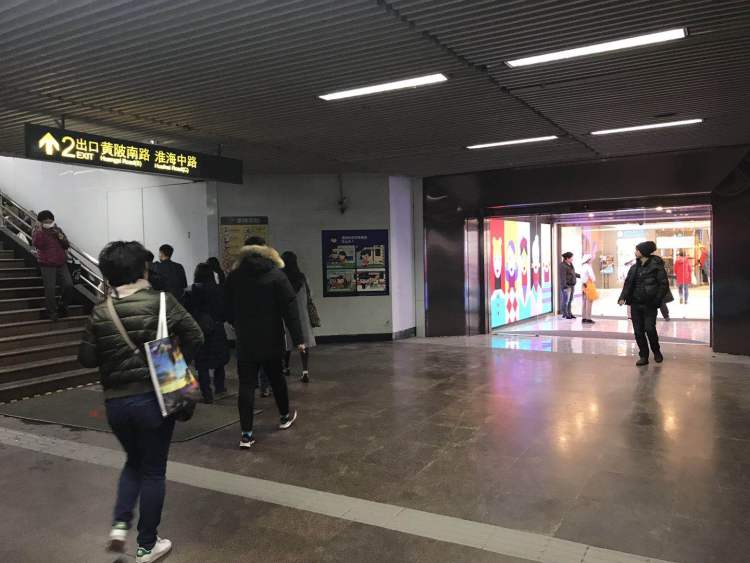 从地铁黄陂南路2号口出来,通往商场B2层的大门终于打开——