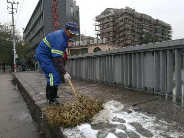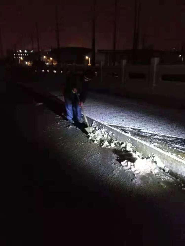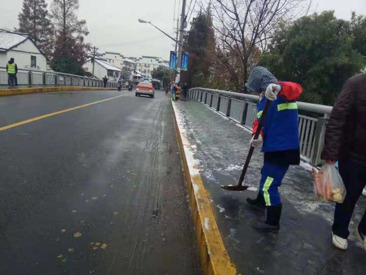 昨夜今晨,全市共出动保障队伍百余支,使用黄沙约8吨,麻袋、草包近4000个,铲、推雪板600余个,及时清除人行道、天桥等积雪,确保了本市道路的整洁有序,保障了市民的出行安全。