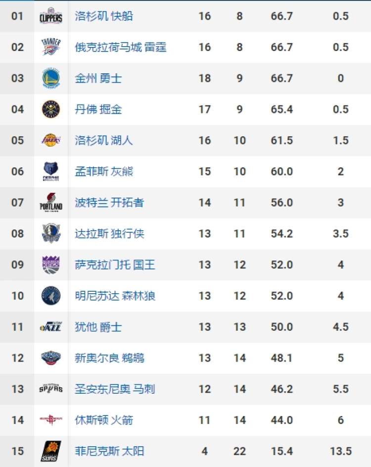 NBA西部排名