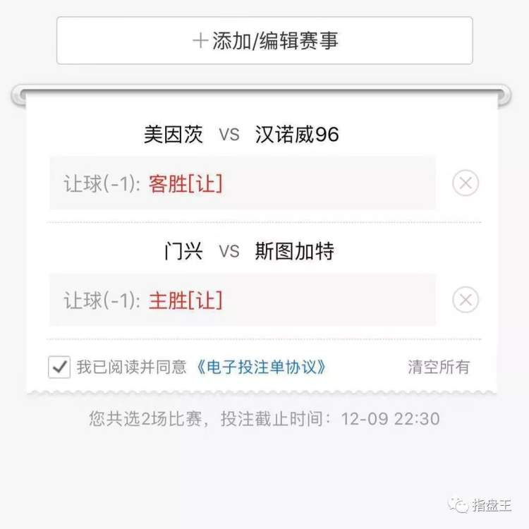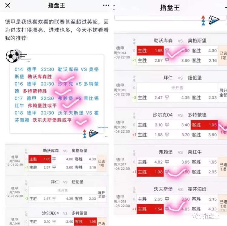 期待今晚德甲“全红”依旧,荷甲也能“完美收官”。如果你正在阅读此文,说明我们有缘,我会继续为你全力推荐,也请大家继续关注微信公众号“指盘王”。今天我会在“指盘王”二条晒一张彩单,里面有明早墨甲附加赛的倾情推荐,请关注!