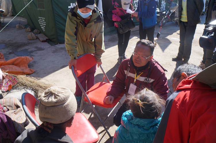 ■援藏期间,尼泊尔发生大地震,西藏日喀则等地受灾,杨晓东跟同事深入灾区,救治灾民。