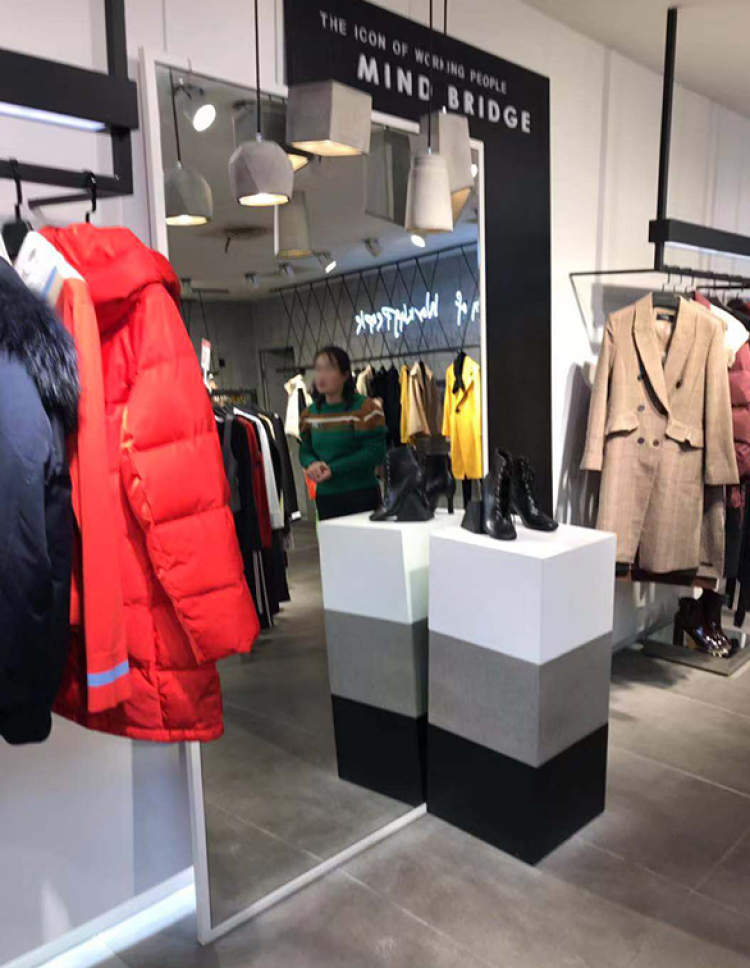 不过,在静安寺商圈另一家知名大型商场的三号楼,记者在走访时,看见很多服装店内都有可移动的镜子。在品牌为“MU”的店内,营业员声称,不久前店内墙上的马赛克脱落,他们就把那一排马赛克都铲掉了。