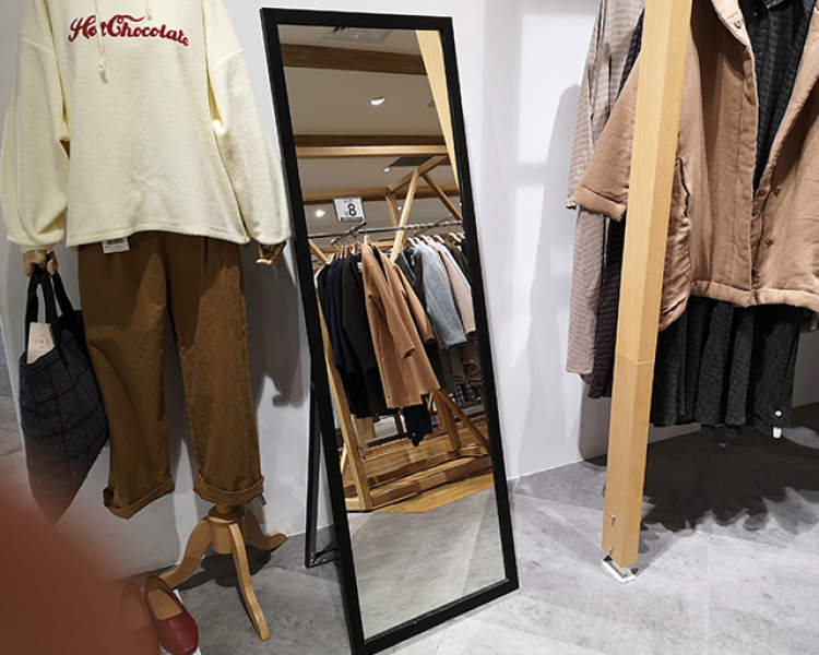 除此之外,记者看到,商场内还有些商家使用了可移动的试衣镜。这些试衣镜高度多在1.5米左右,相对斜靠式试衣镜,这些镜子的重量目测较轻。