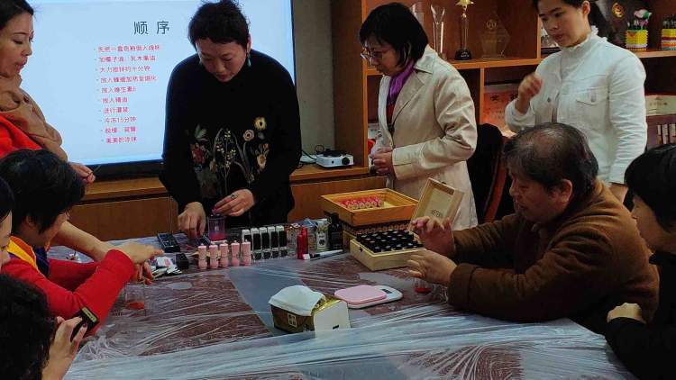 在老师的指导下,妇女代表们不仅对口红的制作过程有了初步的了解,还在动手尝试的过程中体验到口红从材料准备、造型、入模、出模、包装等一系列工序所带来的神奇和愉悦。