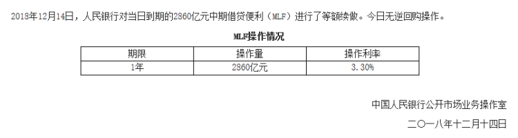 据央行网站今日消息,人民银行对当日到期的2860亿元中期借贷便利(MLF)进行了等额续做(见下图)。今日无逆回购操作。