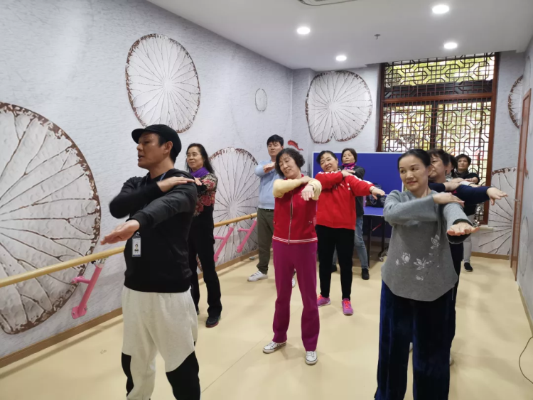 修身舍里,爱好舞蹈居民们正在学习舞蹈,伸伸胳膊踢踢腿,一天都有好精神。闲暇时,这里还可以打打乒乓球。