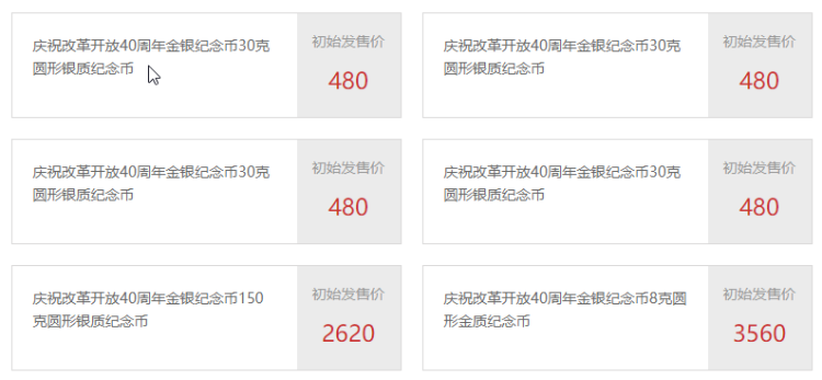 咨询的第一家,告知40周年的所有金银币已经卖完;第2家也是已经无货,但可以预约,全套6枚报价24800元,其中150克银币可以单买,报价13000元;第3家宁波特许零售商咨询的结果是,已经卖完,前期全套6枚20000元不到出售;第4家嘉兴特许零售商,虽然缺货,但可以预约,大概本月底到货,全套报价19500元,150克银币单买报价11000元。