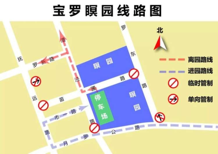 宝山交警根据以往冬至祭扫期间的交通实际情况,制作了区内四大暝园的祭扫路线图和停车示意图。