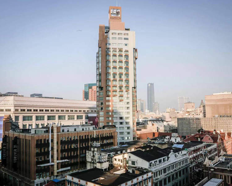 12月15日记者来到了南京东路201号,这座原先的华电大楼现已变成一间名为艾迪逊的酒店,无论是酒店的装潢还是格局都非常的摩登时尚,酒店已经停止施工。靠近大厦可以发现,酒店的底层外立面仍是咖啡色的瓷砖,而高层的外立面则看不出瓷砖,取而代之的是颜色相近的涂料。