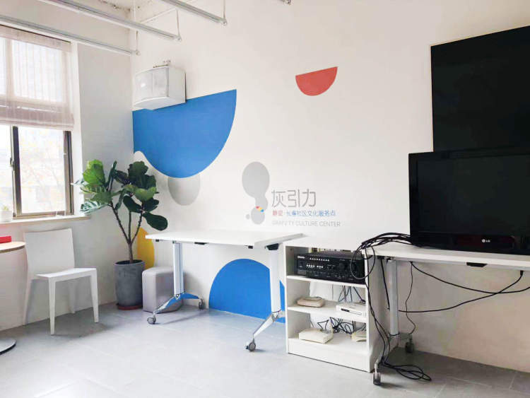 今年2月,居委会顺应街道对长春居委建立党建示范点,把党建“五大元素”融合进活动室的要求,借街道发展办引入“灰引力”打造社区文化新模式的东风,改造活动室被提上了议程安排。在活动室大厅的一面墙上,“灰引力,静安·长春社区文化服务点”的字体尤为显眼,撞色设计融合了现代元素,一扫居民对居委活动室的刻板印象。
