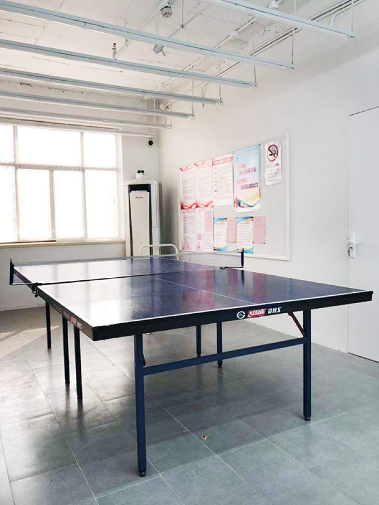 在活动室进门左手边的一面墙上,摆放有乒乓板、跳绳、呼啦圈、握力器等。这些由静安区体育局配送的健身器材,供长春居民免费使用。乒乓桌上也时常上演擂台赛,几位球友相约活动室,来一场自发组织的乒乓比赛,切磋球技。