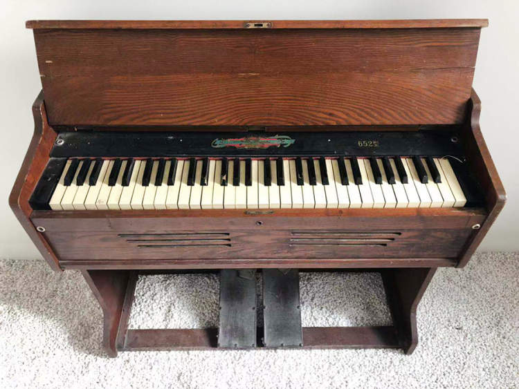周到君看到,活动室里有一片区域和周围布置都不大一样。敞开式的环境布置,更像是一个给人展示的场所。地面并不是传统的木板或石砖,而是采用了小碎石,脚踩上去会发出“唦唦”的声响。靠墙中间摆放着一台老风琴,翻开琴盖后发现这是一台上海牌652型风琴,琴键已经发黄。