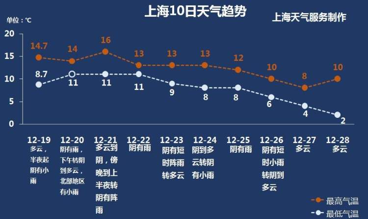 本周内和下周初本市多阴雨天气,气温先升后小幅回落,最低气温8~11℃,最高气温13~16℃。