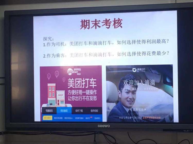 这显然不是课本上那种完美的应用题模式。在秦老师的启发下,高艺舟发现,此前第一次的调查仅仅是把数据直接进行比较,太过简单了。事实上,两种打车软件的选择,有更多需要考虑的因素。