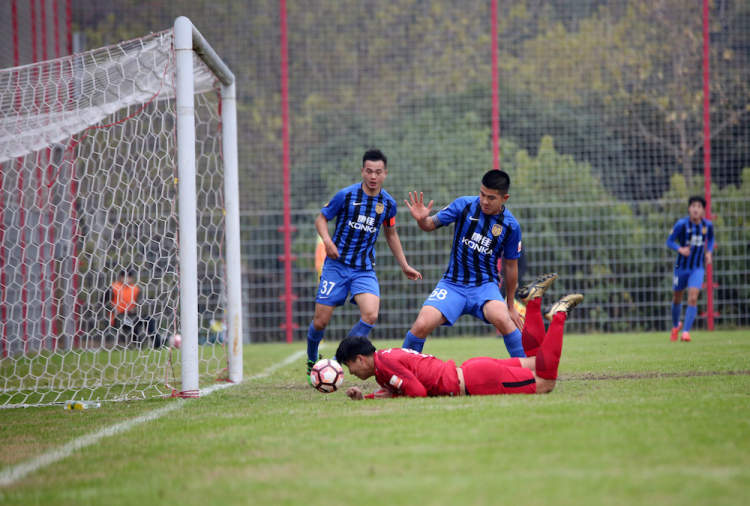 实力上,上港U23队占有一定优势。不过,开场仅仅4分钟江苏苏宁U23队就在一次角球进攻中破门。