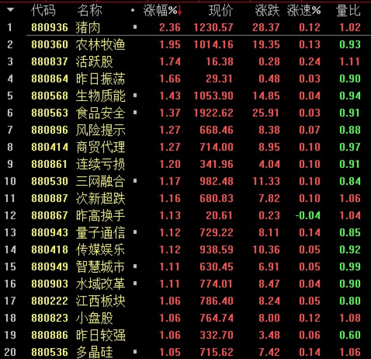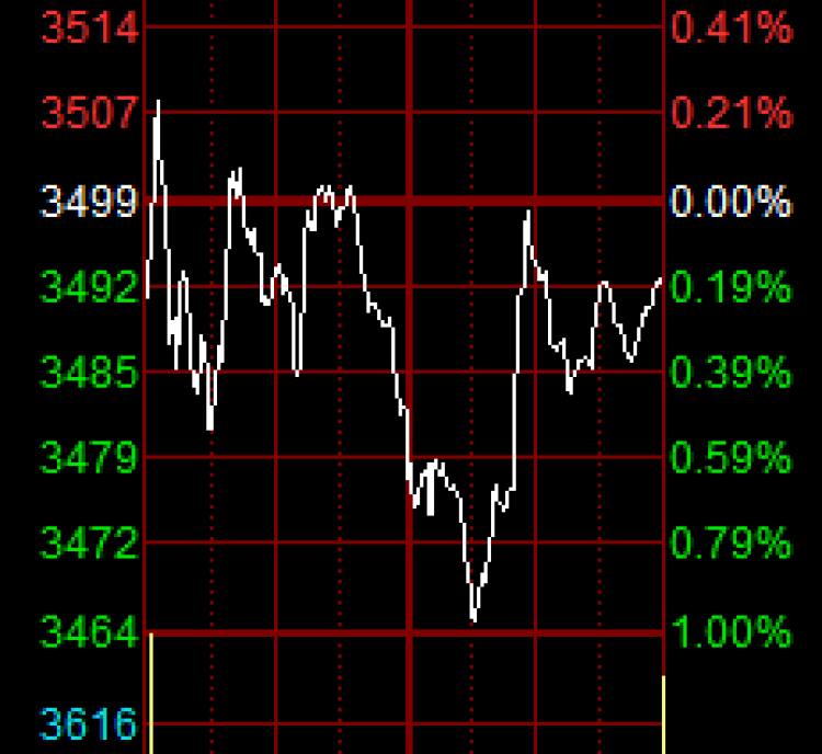 从代表沪深整体市场表现的国证A指来看,今日成交量较昨日微增,市场恐慌盘不多,收报3493点,微跌0.18%,全天振幅1.23%,K线形态为红十字星,表明市场多空力量暂时平衡。