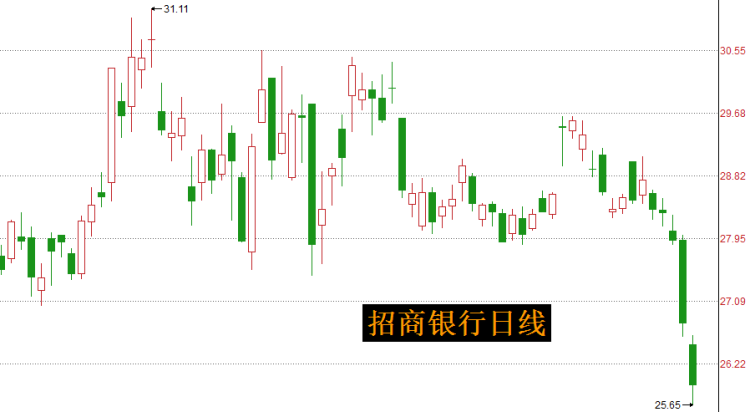 近日银行板块连续下跌引人关注,其中招商银行(见上图)近2个交易日跌幅近8%,民生银行5连阴。