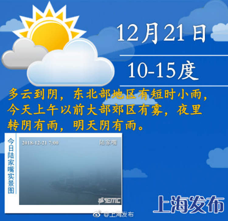 今天出门要注意啦!夜里将有明显降水,上午以前大部郊区有浓雾 周到君 2018-12-21 来源:周到上海 小伙伴们早上好! 又到了一周工作日的最后一天啦!今天也要精神饱满的学习工作鸭! 今天上海将会是多云到阴的天气,东北部地区有短时小雨,今天夜里起转阴有雨。 另外,上海中心气象台今晨已发布大雾黄色预警信号,预计今天上午以前本市大部郊区有能见度小于500米的浓雾,大家出门时也要注意啦! 今天本市最高温15度,最低10度。双休日到下周初,申城以阴雨天气为主,气温将稍有下降。 周到君友情提醒出门请一定要带好雨具哦。 来源:周到上海 作者:周到君 赞一个 (0)