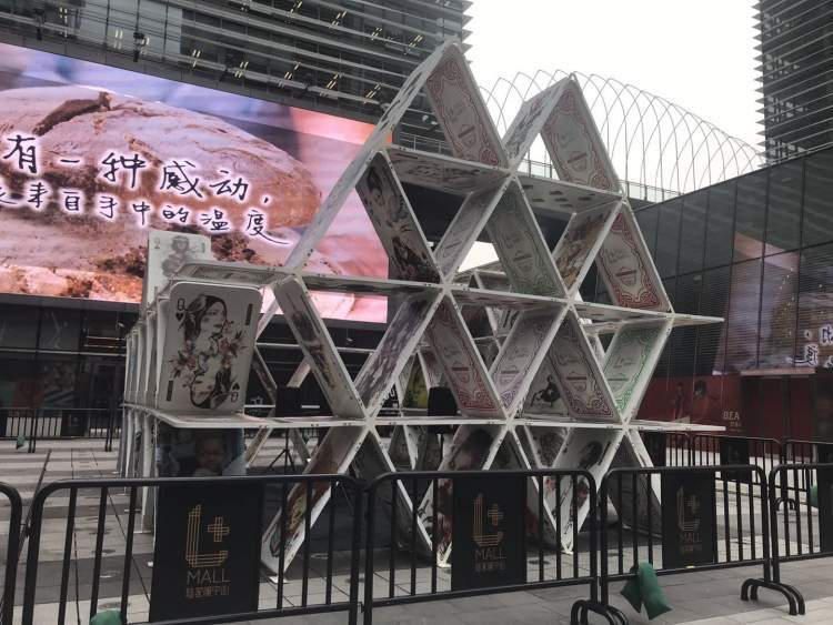在拍什么呢?看!对面就是“扑克牌”搭出来的作品~