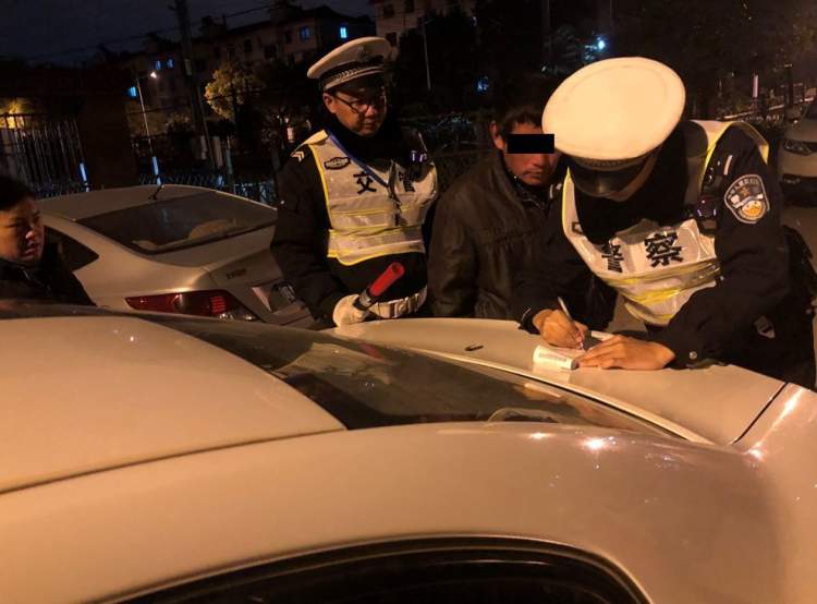 2018年12月14日21时55分,浦东交警在顾曹公路民秋路路口,对违法驾驶人薛某实施“饮酒后驾驶机动车的”违法行为进行查处。