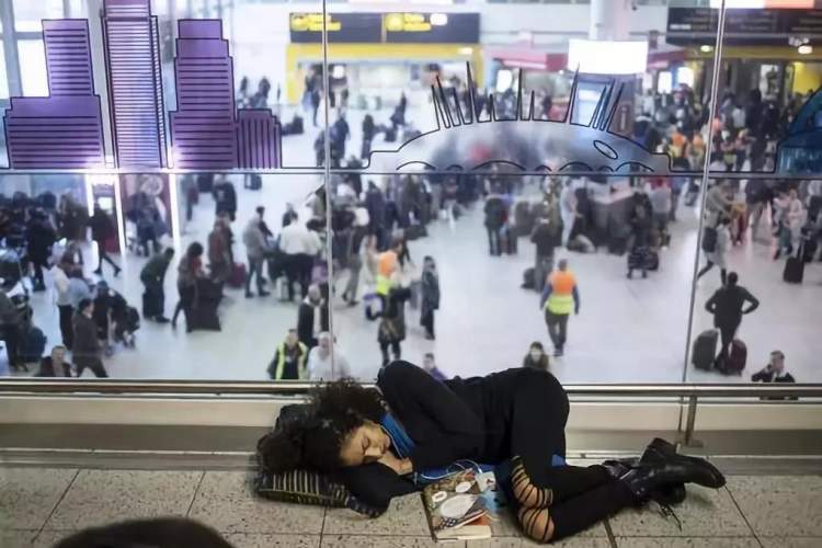 有滞留在机场,“逮哪儿睡哪儿”,连三岁的小孩、孕妇都得在严寒中睡在地板上……