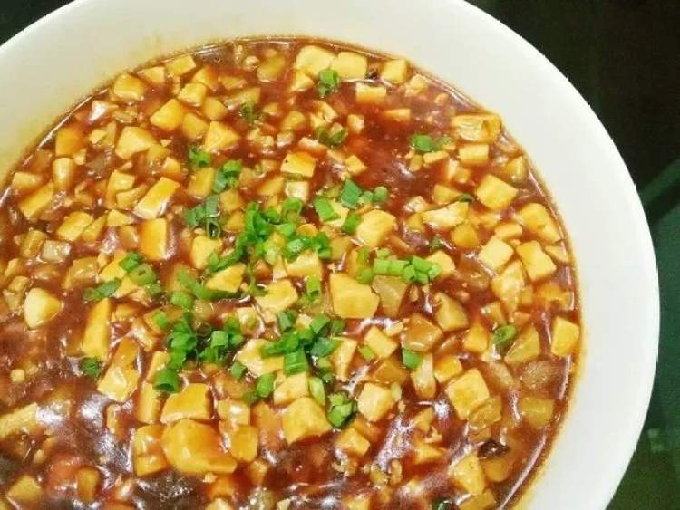 虽然缺少一个传奇的起源,但△沃豆腐实打实是深受富阳人民喜爱的一道家常菜。沃豆腐的神奇之处在于,可选用的食材极其丰富,任选几类切丁翻炒,和豆腐一起勾芡搅拌,都会碰撞出不一样的美味。
