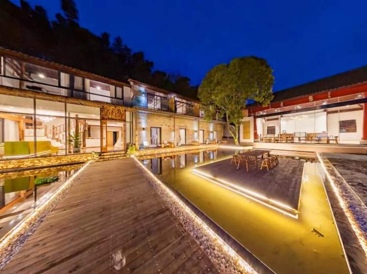 在这片被竹海包裹的地方,看不到都市的霓虹,有的只是原汁原味的乡村生活。民宿是由六十年代的老戏台和青砖楼结合集装箱改造而成,既保留了历史的韵味,又有着现代的创新和舒适感。冬可晒太阳,夏可戏水观星,春可赏桃花十里,秋可摘桂花制糕,每一天,都可以在花迹找到梦寐以求的诗意生活。