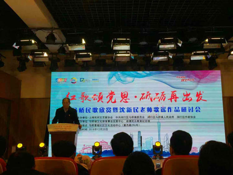 12月25日,由上海民间文艺家协会、闵行区作家协会、马桥镇人民政府共同主办的 “红歌颂党恩•砥砺再出发”马桥民歌欣赏暨沈新民老师歌谣作品研讨会举行。活动中邀请到上海民间文艺家协会驻会副主席倪里勋、闵行区作家协会副会长宋海年、上海百老团作家分会副主席潘与庆、马桥镇文化体育事业发展中心党支部书记、副主任吴旭峰等领导,以及上海民间文艺家协会、闵行区作家协会会员、马桥镇文化专职干部、文艺爱好者参加。