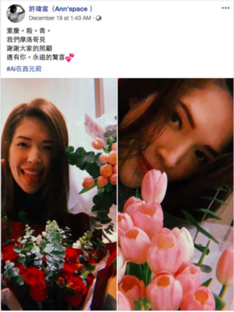 日前,网传艺人许玮甯与男友刘又年在12月15日互定终身,当日仅邀请至亲见证他们登记。目前,两人在摩洛哥“度蜜月”。