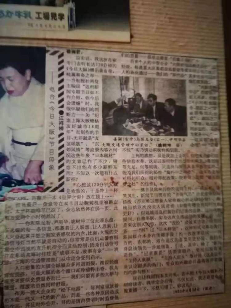 再比如第一档“脱口秀”直播,92年姜澜和电台的同事一起到日本访问,带回很多的见闻观感。老台长陈文炳便提议:我们能不能做一档节目,主持人主持、提问,由姜澜和尹明华畅谈观感,尝试一下新的广播形式?“那档叫做《今日大阪》的广播节目涉及到出租车、市内交通管理、市容、人们的择业观,也讲了跟很多老企业家的交流……完全没准备地谈了两个小时。”
