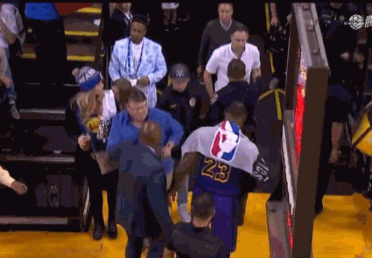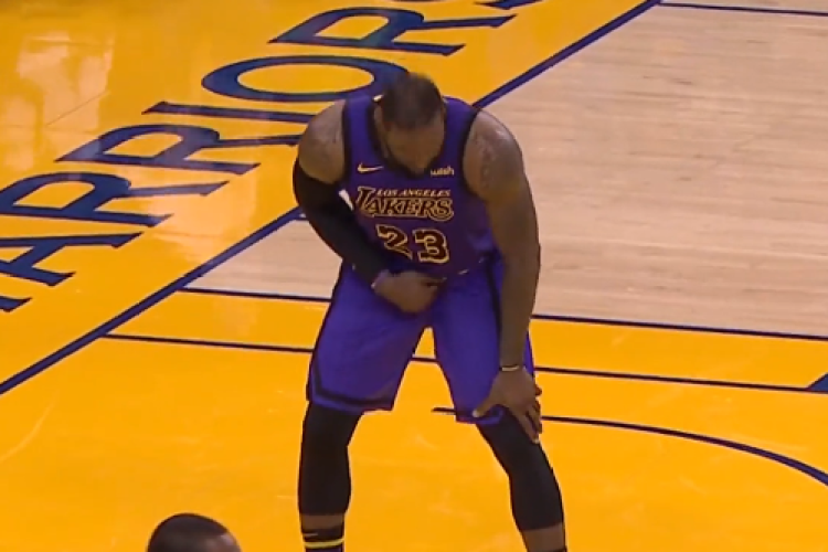 在第三节还剩7分51秒时,詹姆斯在一次突破时和格林撞在一起,在倒地时,勒布朗捂住了自己的大腿根部,在之后回防时,詹姆斯仍然捂着自己的大腿,表情痛苦,主动申请暂停。随后詹姆斯无法坚持,在训练师的陪同下,他回到了更衣室检查治疗。在前往更衣室之前,詹姆斯表示他感觉到了“啪的一声”。