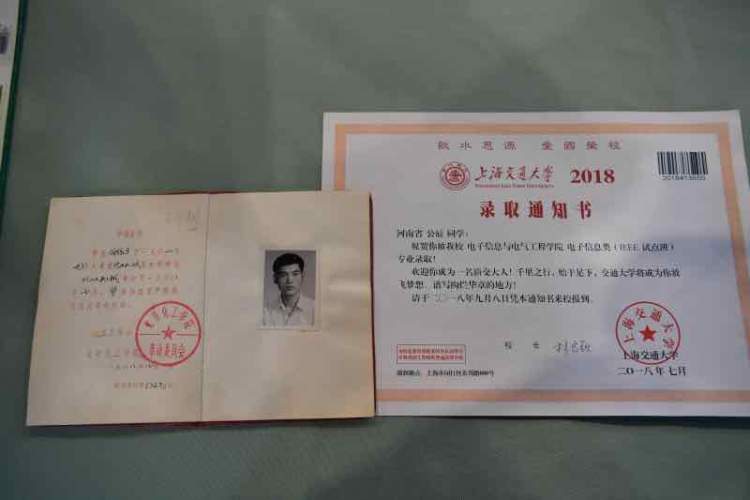 上海交大电子信息专业本科生杨弘博从家里带来了一张40年前的喜报。