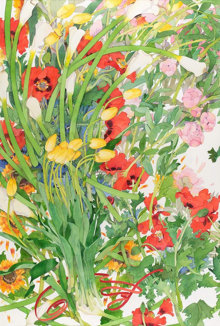 ■盖瑞《一路繁花2》 152×102cm 纸本水彩