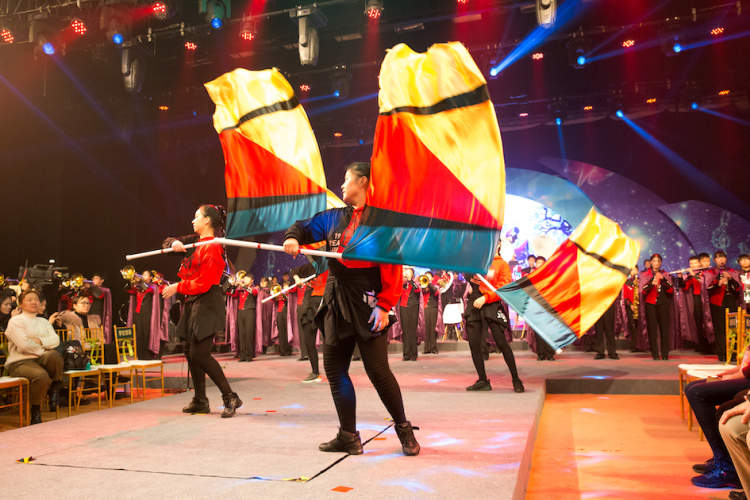 罗店中学管乐团、高境一中管乐团这两个市级乐团献演了《朝着新的地平线》、《梦幻童年》,管乐团恢宏的气势、精彩的演奏令人赞叹。高境一中还尝试在演奏中加入了旗舞和行进表演,极大提升了节目的精彩程度。