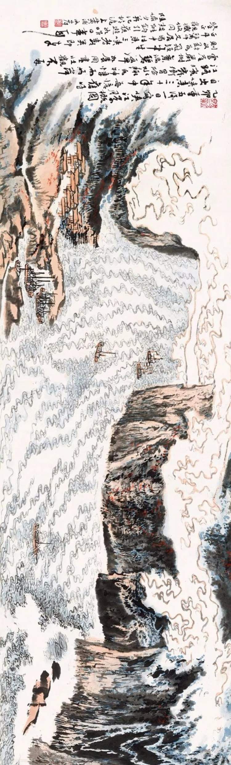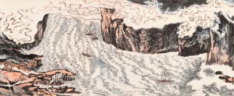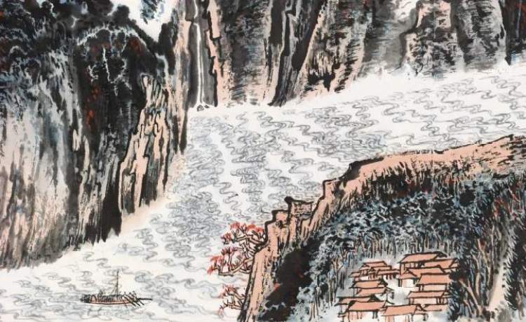 这样的经历一月有余,陆俨少在木筏上观看激流险滩,云水变幻,并牢记在心,日后闻名于世的峡江险水,此时便在他心底发芽。