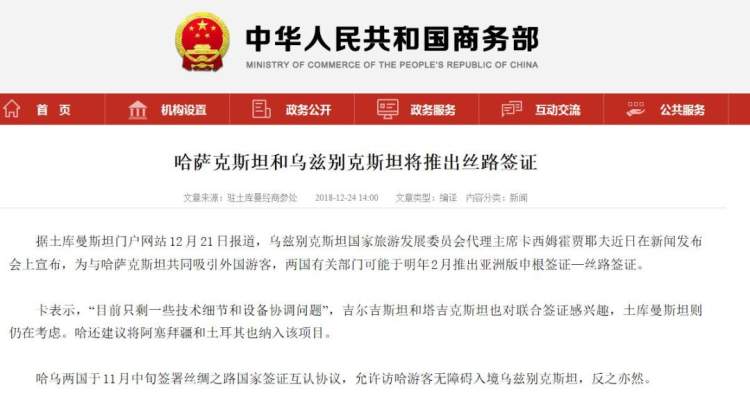 就在上周,乌兹别克斯坦国家旅游发展委员会代理主席卡西姆霍贾耶夫在新闻发布会上宣布,为与哈萨克斯坦共同吸引外国游客,两国有关部门可能于明年2月推出亚洲版申根签证—丝路签证。卡表示,“目前只剩一些技术细节和设备协调问题”,吉尔吉斯坦和塔吉克斯坦也对联合签证感兴趣,土库曼斯坦则仍在考虑。哈还建议将阿塞拜疆和土耳其也纳入该项目。