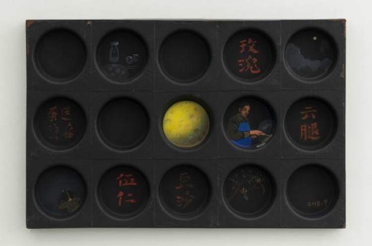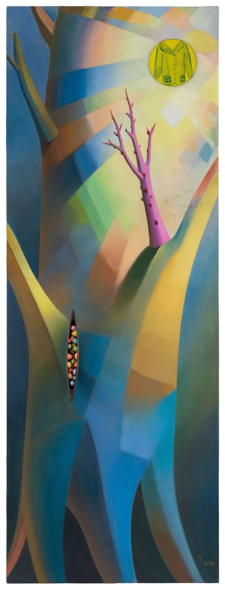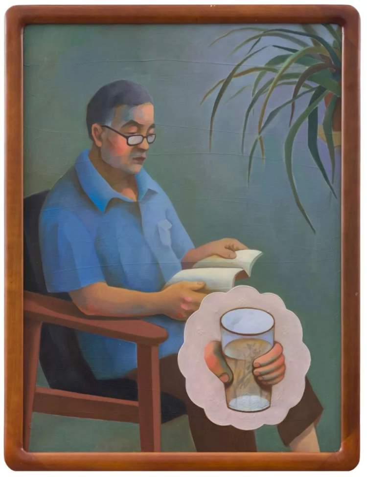 ■陈可《杯中兰》 油彩与茶杯垫拼贴于布面
