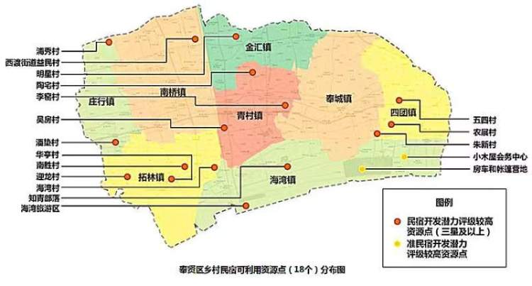 其中,既包括诸如庄行镇潘垫村、浦秀村,青村镇吴房村,四团镇五四村等这样有基础、有条件打造示范精品的优势资源,也包括像五四农场知青部落、奉城镇朱新村、金汇镇明星村、柘林镇迎龙村、华亭村等条件逐步完善、发展潜力较大的存量资源。