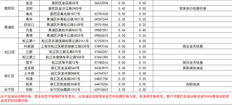 此外,再提醒一下广大车主:除了调价外,中石化上海、中石油上海的这些加油站还能再优惠: