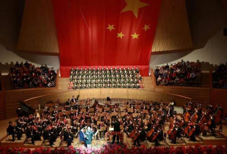 昨晚的音乐会现场,巨幅红旗下,上交男女乐手分别佩戴红色领结和丝巾,将音乐会现场点缀成一片喜悦的海洋。音乐会以在中国共产党领导下的中国革命历程为轴线,选取反映各个历史时期、特别是1949年新中国成立后有着深厚群众基础的歌曲,并邀请著名作曲家邹野操刀,用交响音乐的手段创作整理,使这些原创中国红色经典作品具有更强大的叙述性和戏剧性,展现中国红色魅力。