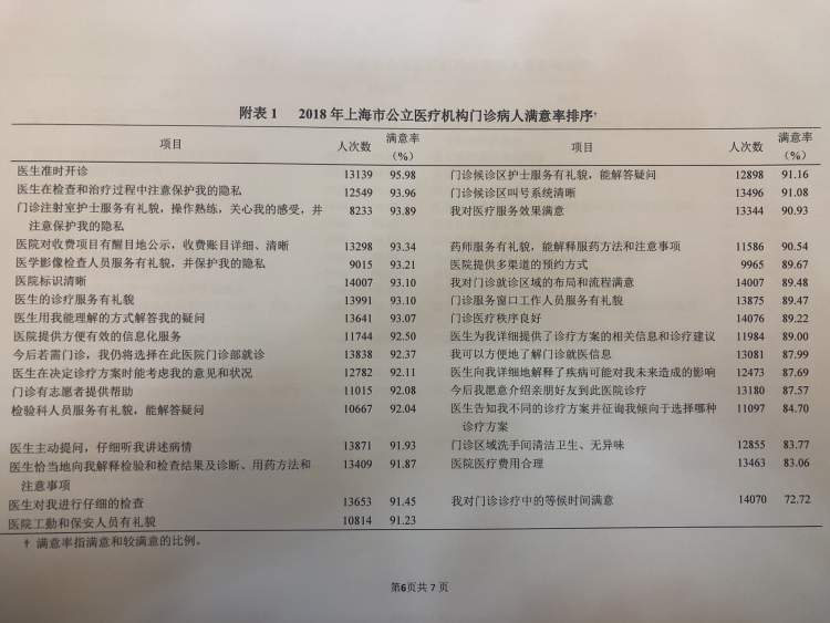 1月2日,上海市公立医疗机构病人满意度调查公布!